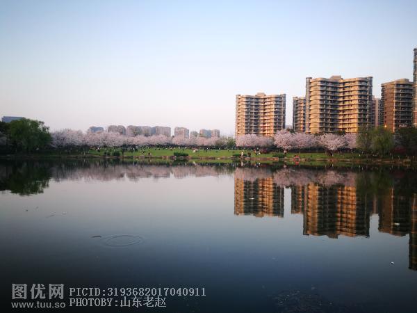 傍晚的瓜渚湖与樱花