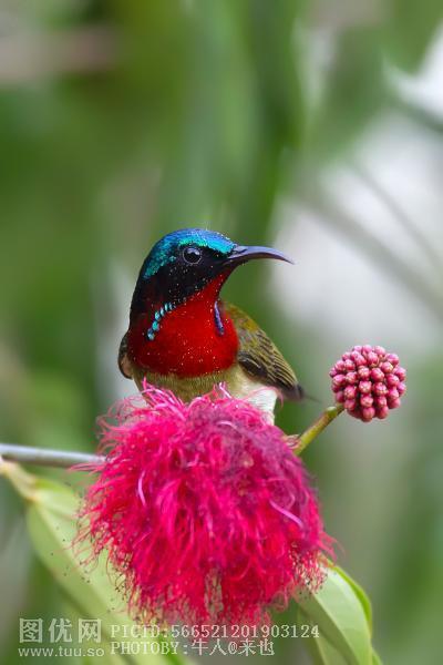 红绒球花与叉尾太阳鸟