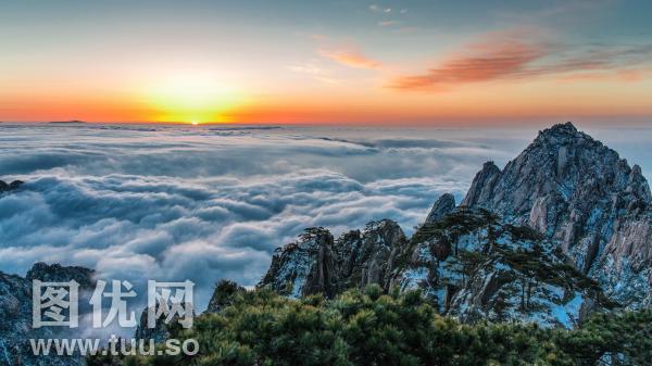 雪后黄山看日出日落