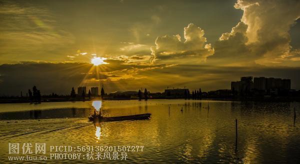 夕照泗汇江
