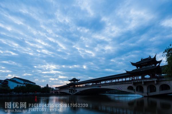 风则江廊桥霞光