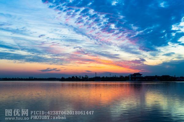 迪荡湖唯美朝霞